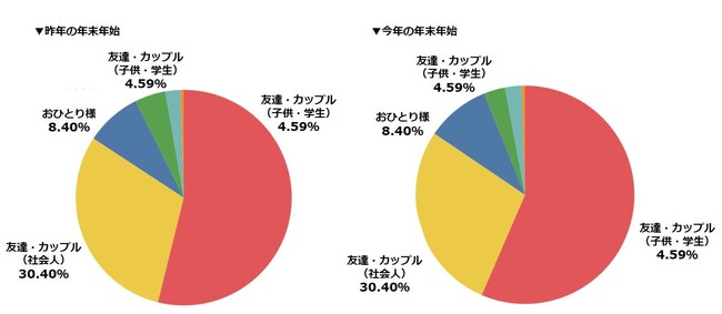 ■ 「ファミリー」と「おひとり様」で出かけた人が微増、「友達・カップル」で出かけた人が微減