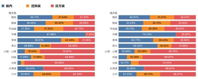 ■ 関東・関西・東海エリア居住者は「遠方県」へ、東北・甲信越・北陸居住者は「県内」へ