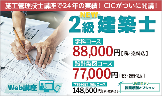 施工管理技士講座で24年の実績・CICによる【2級建築士 Web講座】が本日より申込受付開始