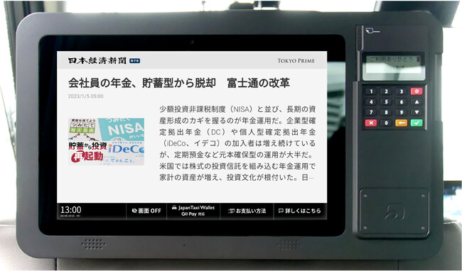 株式会社IRIS(本社:東京都港区、代表取締役:眞井 卓弥・宇木 大介)は、日本最大(※1)のタクシーサイネージメディア「Tokyo Prime」において、2023年1月16日より、株式会社日本経済新聞社(本社:東京都千代田区、代表取締役社長:長谷部 剛)の日経電子版に掲載される最新記事の配信を開始します。