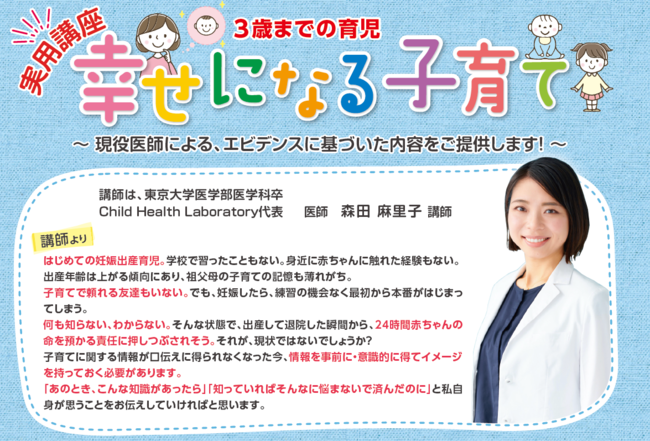 資格取得に向けた教育サービスを展開しているTAC株式会社(東京都千代田区、代表取締役社長:多田 敏男)では、2023年2月1日(水)より現役医師によるエビデンスに基づいた子育ての知識を学ぶ、『幸せになる子育て講座』を開講いたします。