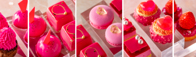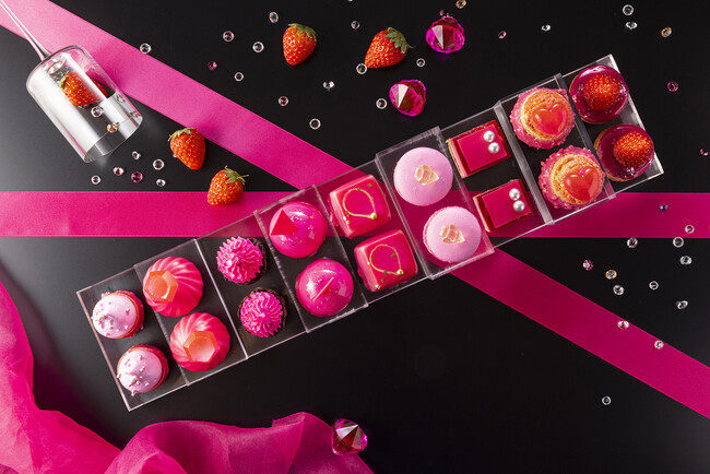 1月16日からは、一年のはじまりにふさわしい華やかな “Think Pink! (=明るく、ポジティブに行こう!)” テーマのアフタヌーンティーがセットに。旬のいちごとチョコレートを使用し、ジュエリーのモチーフを施したオールピンクのフォトジェニックなスイーツは、いちご尽くしの全9種でお届けします。