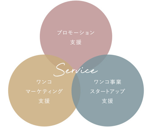 ワンコnowaは、飼い主さんとの輪、各スペシャリストとの輪、そして強みであるコンテンツ企画力やクリエイティブ力を活かし、ワンコに特化したマーケティング&クリエイティブソリューションを提供します。