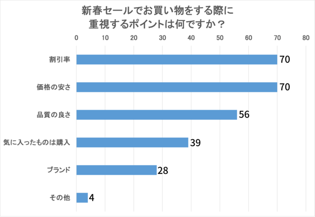 セールということもあり、「割引率」と「価格の安さ」が同票1位でお得感が重視される結果となり、3位に「品質の良さ」が続きました。