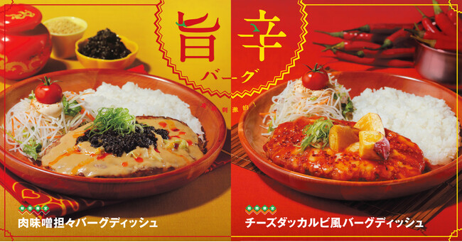 今年の旨辛バーグは、肉味噌のコクにピリリとした辣油の味わいが特徴の「肉味噌担々バーグディッシュ」が新たに登場します。さらに、コチュジャンの刺激ととろ~りチーズを愉しめる「チーズダッカルビ風バーグディッシュ」が昨年に引き続き、今年も登場。「じんわりとした辛さ」と「やみつきになる辛さ」2種類の異なる辛さのディッシュメニューを是非食べ比べしてみてください。