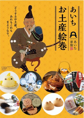 この度、徳川家康を始めとする戦国武将のゆかりの地を巡るために来県された観光客の皆様に向けて、本県の観光土産品をPRする冊子「あいち お土産絵巻」を発行しますので、お知らせします。
