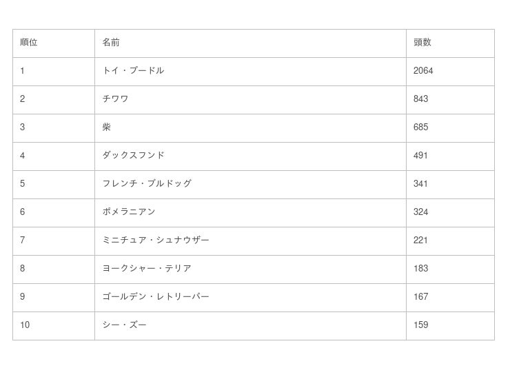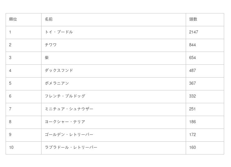 ・1位は「トイ・プードル」、2位「チワワ」、3位「柴」