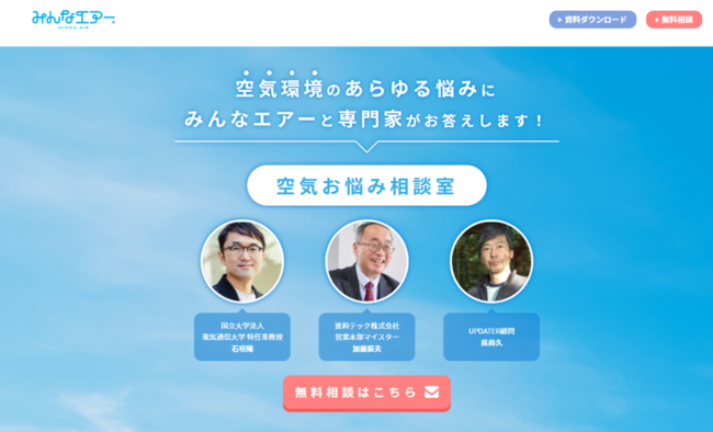 株式会社UPDATER(所在地:東京都世田谷区、代表取締役:大石英司、以下「UPDATER」)、国立大学法人電気通信大学(所在地:東京都調布市、学長:田野俊一、以下「電通大」)、および進和テック株式会社(所在地:東京都中野区、代表取締役社長 渡邊裕元、以下 「進和テック」)は、UPDATERの空気環境改善事業「みんなエアー」を中核に、屋内外におけるIoT機器を用いた空気環境の見える化と分析、および空気清浄装置の活用と換気などによる空気環境の改善に関する共同研究を開始します。また、本共同研究では、空気環境に関するお困りごとにお答えする「空気質・専門家相談サービス(無料)」も実施します。