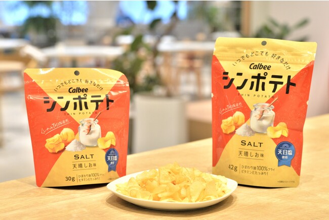誕生から3年!カルビー最薄ポテトチップスのしお味がリニューアル 新たに天日塩を使用!より満足感のある味わいに仕上げた『シンポテト 天晴しお味』