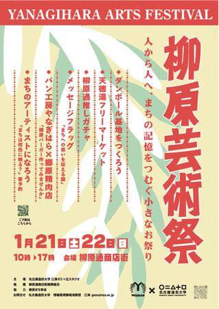 名古屋市名城地区にキャンパスを移転した名古屋造形大学とその東に隣接する柳原通商店街が協力し、「まち」を会場にした小さなお祭り「柳原芸術祭」を開催することになりました。