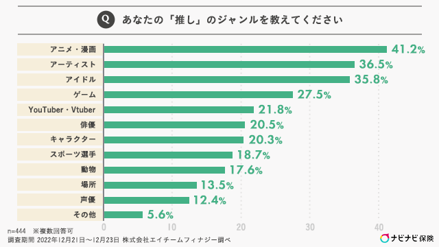 「推しのジャンル」1位は「アニメ・漫画」(41.2%)、2位は「アーティスト」で36.5%
