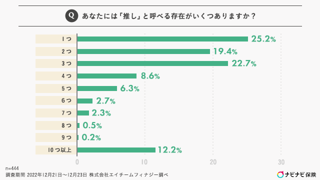 一方で、10人に1人以上である12.2%の人が「推しが10つ以上ある」と回答したことが明らかに。