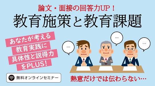 【教員採用試験】論文・面接の回答力アップ!無料オンラインセミナー「教育施策と教育課題」を開催