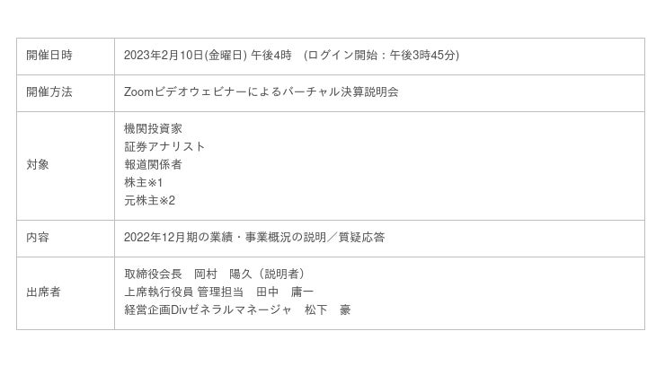 株主・投資家出席型バーチャル決算説明会開催のお知らせ