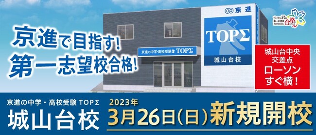 京都・滋賀・愛知を中心に、学習塾を全国に展開する株式会社京進は、2023年3月26日(日)京都府木津川市に、中学・高校受験TOPΣ城山台(しろやまだい)校を開校いたします。