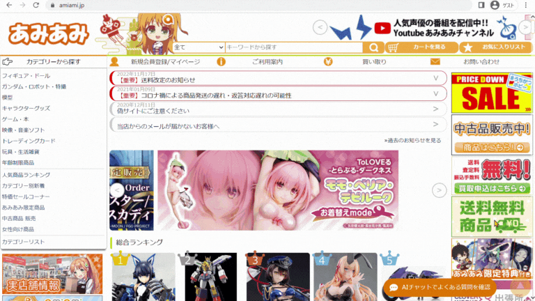 フィギュア・ホビー通販サイト『あみあみ』:https://www.amiami.jp/