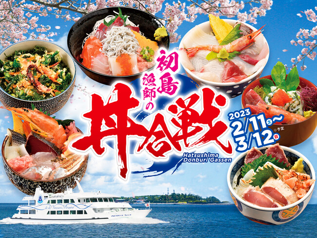 熱海港から旅客船でわずか30分、首都圏から一番近い離島・初島(静岡県熱海市)では、2023年2月11日(土)~3月12日(日)の期間、漁れたての海の幸を堪能できる恒例グルメイベント「初島漁師の丼(どんぶり)合戦」を開催いたします。