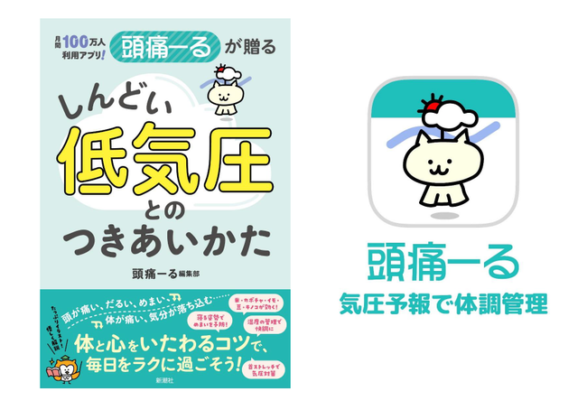 株式会社ベルシステム24(本社:東京都港区、代表取締役 社長執行役員:野田 俊介、以下:ベルシステム24)が提供する、気圧予報に基づく体調管理アプリ「頭痛ーる」(以下:本アプリ)から、初の書籍『月間100万人利用アプリ!頭痛ーるが贈るしんどい低気圧とのつきあいかた』(新潮社)が2月16日(木)に、全国書店およびネット書店で発売となります。本アプリを開発し、頭痛ーる公式サイトで気象病に関する情報配信を行っている「頭痛ーる編集部」が、気圧の変化による不調に悩む方々に向けて、低気圧との付き合い方や対策方法等をまとめたお役立ち本です。