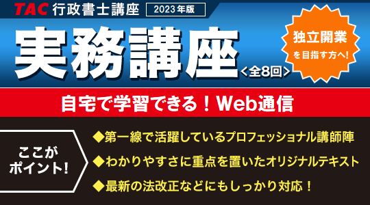 行政書士試験対策講座を展開しているTAC株式会社(東京都千代田区、代表取締役:多田敏男)は、行政書士試験合格者を対象とした『行政書士 実務講座』を1/25(水)より申込受付開始いたします。
