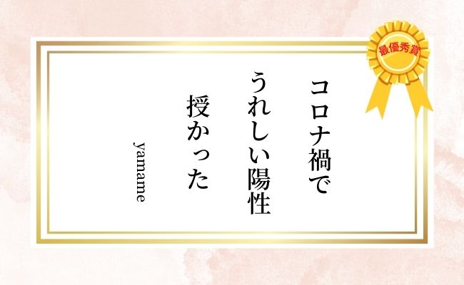 最優秀賞「コロナ禍で うれしい陽性 授かった」