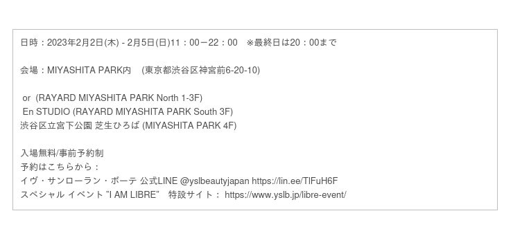 YSL BEAUTYの世界的アイコン フレグランス「LIBRE」(リブレ)の魅力に没入できるスペシャル イベント
