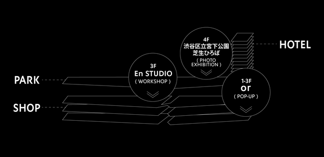 MIYASHITA PARK内会場の各フロアでは、様々なコンテンツを楽しんでいただけます。