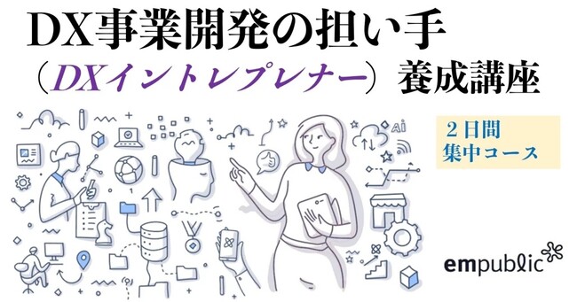そこで、株式会社エンパブリック(東京都文京区、代表取締役:広石拓司)は、社会課題や顧客の課題の革新的な解決方法にデジタルを活かした事業を開発するプロセスを2日間集中で体験し、新しいデジタル事業を構想・推進できる社内起業家(イントレプレナー)を養成する「DX事業開発の担い手(DXイントレプレナー)養成講座」を2023年2月、全2回オンライン集中開催で実施します。
