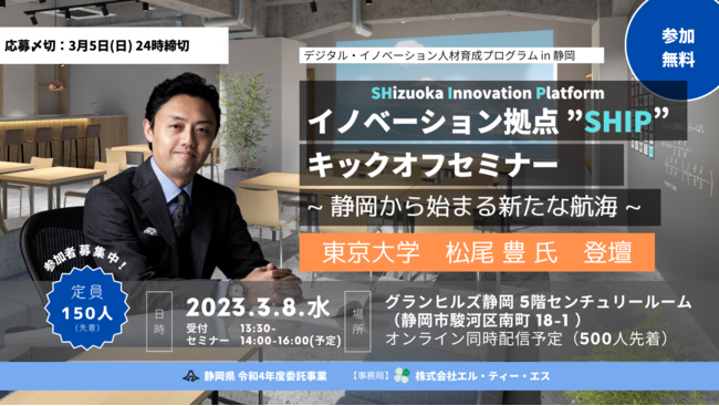 静岡県では、これらの課題を解決するトップレベルICT人材の確保・育成のため、2023年3月(予定)に、静岡市内にイノベーション拠点「SHIP」を開所します。(SHizuoka Innovation Platformの略。シップ)