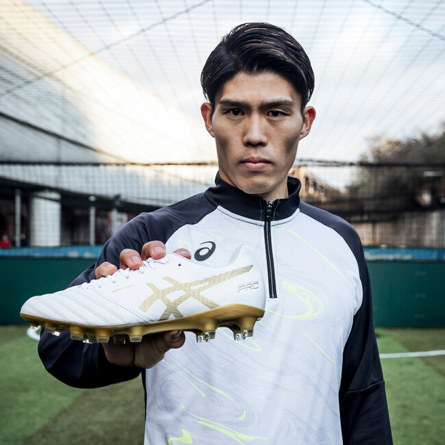 サッカー選手にとってスパイクは身体の一部とも言えますが、アシックスのスパイクは足にしっかりとフィットし、細部のクオリティも高いです。ピッチ上で結果として表現できればと思っているので、応援よろしくお願いいたします。