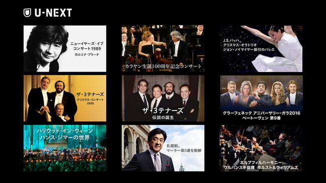 USEN-NEXT GROUPの株式会社U-NEXT(本社:東京都品川区、代表取締役社長:堤 天心)が運営する動画配信サービス「U-NEXT」は、C Major Entertainment GmbH、ならびにUNITEL GmbHが制作するオペラ、オーケストラ、バレエなどの映像作品について4K高画質を含む新たな62作品を、2023年1月26日(木)より見放題で順次配信いたします。