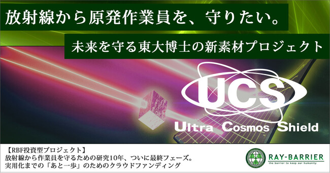この度、株式会社レイバリア(代表取締役:江本真聰)が開発した第三の放射線遮蔽(しゃへい)材「UCS(Ultra Cosmos Shield)」の実用化を支援する投資型クラウドファンディングプロジェクトとして、UCS実用化支援ファンドを組成。宙とぶペンギン( https://flying-penguin.jp )内にて募集受付を開始したことをお知らせします。