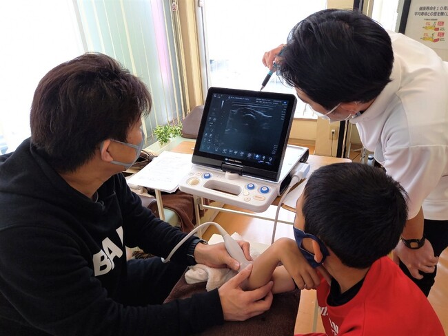 NPO法人成長期スポーツ障害検診機構では、青少年のスポーツ団体を中心に、講演会や啓蒙活動の際にエコー検査を行う事で、青少年のスポーツ障害予防に寄与しています。
