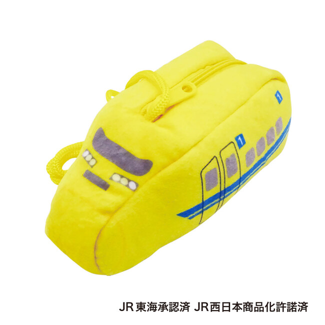 ドクターイエローと700系の斜め掛けができるぬいぐるみポーチ。ハンカチやお気に入りのおもちゃを入れてお出かけできます。