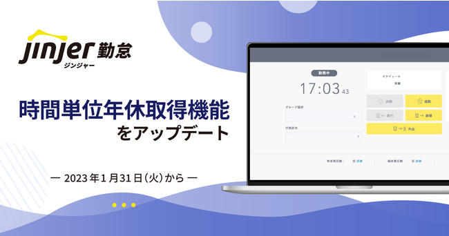 jinjer株式会社(本社:東京都新宿区、代表取締役CEO:加藤 賢)が提供する、バックオフィス向けクラウドサービス「ジンジャー勤怠」の、時間単位年休取得機能を2023年1月31日(火)にアップデートしたことをお知らせします。
