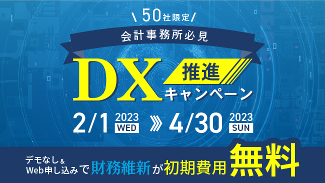 株式会社YKプランニング(本社:山口県防府市、代表取締役:岡本 辰徳)は、会計事務所向け付加価値創造ソフト『財務維新』において、初期費用が無料になる『DX推進キャンペーン』を2023年2月1日から2023年4月30日まで実施します。