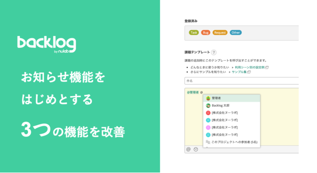 Backlog、お知らせ機能をはじめとする3つの機能を改善 さらなる業務の効率化を後押し