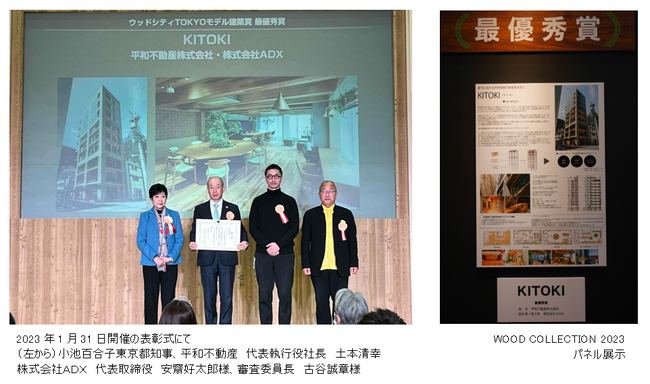 平和不動産株式会社(代表執行役社長:土本清幸)が推進する日本橋兜町・茅場町再活性化プロジェクトにおいて、2022年4月に誕生した木造メガストラクチャーハイブリッドビル「KITOKI」が東京都主催の『ウッドシティTOKYO モデル建築賞』において最優秀賞(知事賞)を受賞しましたので、お知らせします。