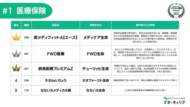 現役保険募集人88人のの回答データをもとに集計したイチオシ保険ランキング2023を発表。第一弾は「医療保険」