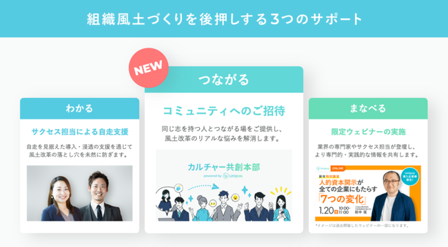 心理的安全性を高め、挑戦できる風土をつくるHRテック事業「ピアボーナス(R)︎Unipos」(以下、Unipos)を提供するUnipos株式会社(本社:東京都渋谷区)は、コミュニティ「カルチャー共創本部」を発足致します。2023年3月期決算から有価証券報告書内の人的資本開示が義務化される今、多くの企業が取り組み始めている組織風土づくり。Uniposを通じて組織風土づくりに挑む先駆者たちをより強力にバックアップするため、企業規模や業界の壁を越えて同じ取り組みを行う仲間との「つながり」を生む場の提供を開始しました。