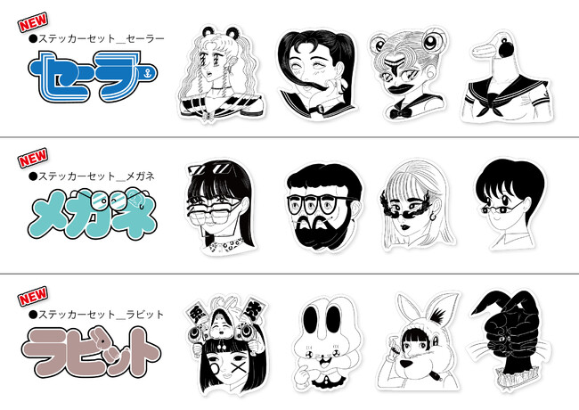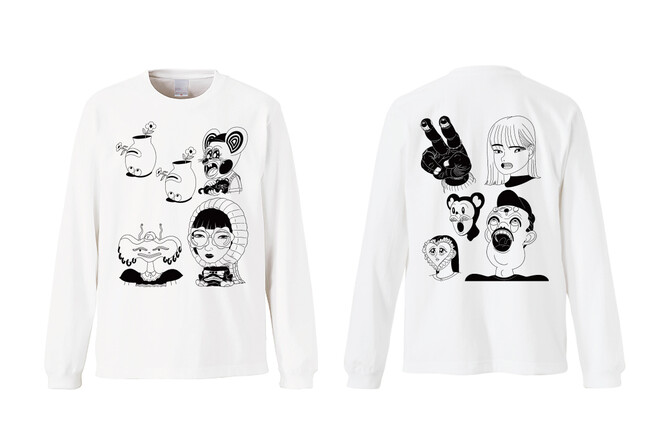 会場では、本展のために描き下ろした新作のキャンバス作品、ステッカーやTシャツなどのグッズの他、作品集『VISITORS, VISITORS.』も販売いたします。
