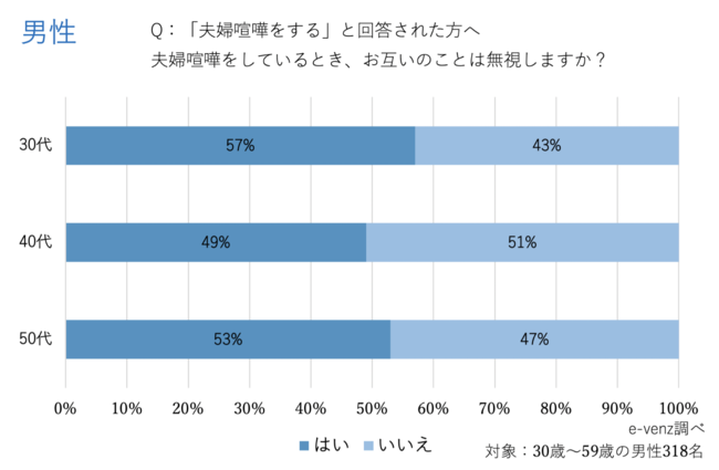 「夫婦喧嘩をする」と回答した方に、お互い無視するか調査してみました。