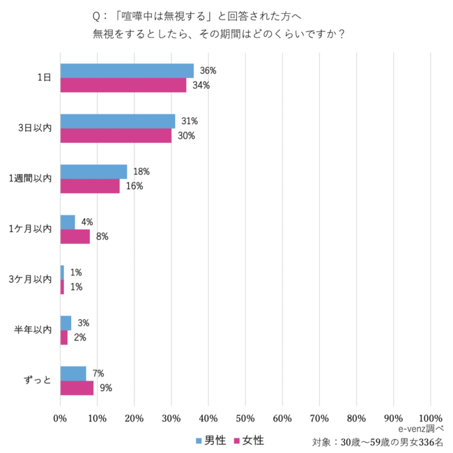 「喧嘩中は無視する」と回答した方に、どのくらいの期間「無視する」のか調査してみました。