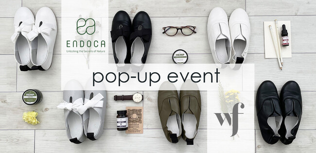 南青山のイベントスペース「クロシェ青山プレイス」では、環境配慮型フラットシューズブランド【wf】と、良質で安全・安心なCBD【ENDOCA】をゆっくりお試しいただける期間限定ショップを、2023年2月11日(土)から19日(日)まで、開催いたします。2月18日にはCBD初心者向けのセミナーも実施します。