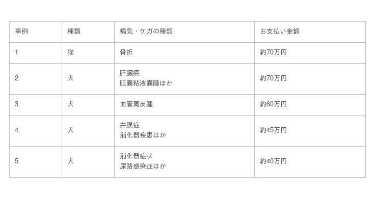 ※上記の数値は、PS保険加入者さまから請求されたものであり、ペットメディカルサポートが補償する範囲を示すものではありません。また、平均や水準を示すものでもありません。