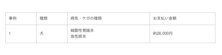 保険金のお支払いは、上記のように高額なものに限りません。次に、平均的なお支払い事例としてペットの細菌性胃腸炎、急性膵炎の診療をご紹介します。