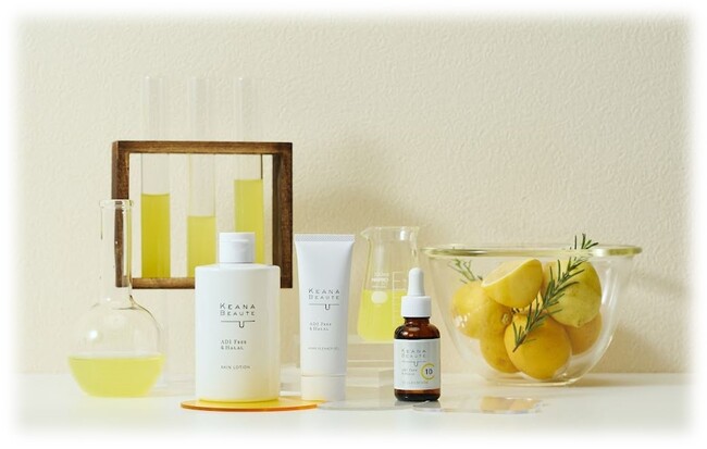美容液には「ビタミンC」の中でも即効性が高い「ピュアビタミンC(アスコルビン酸)」を採用することで安定性の確保に成功しました。美容液以外のアイテムには「ビタミンC誘導体」の中でも特に浸透性に優れた「APPS」を採用し、「ビタミンC」の効果を実感いただける処方設計にしています。合成着色料、シリコーン不使用。