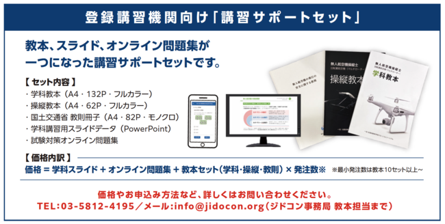 登録講習機関を目指す新規ドローンスクールへのノウハウ提供や、既存校への「講習サポートセット」の販売を開始