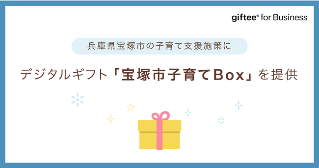 eギフトプラットフォーム事業(※1)を展開する株式会社ギフティ(本社:東京都品川区/代表取締役:太田 睦、鈴木 達哉/以下、ギフティ)は、デジタルギフトを活用した法人向けサービス「giftee for Business」(※2)を兵庫県宝塚市(※3)が2023年1月15日 (日)~3月15日(水)の期間、18歳以下の子どもを持つ世帯に向けて実施する「宝塚市子育て世帯応援給付事業」に採択いただきました。これに伴い、対象世帯へ給付されるデジタルギフト「宝塚市子育てBox」を提供しておりますのでお知らせいたします。同Boxは「giftee for Business」の主力プロダクト「giftee Box(R)」(※4)を宝塚市オリジナル仕様にカスタマイズしたものであり、「giftee for Business」サービスとして、自治体向けにカスタマイズしたデジタルギフトを提供するのは今回が初となります。なお、本事業は日本旅行ビジネスソリューションズ株式会社(本社:大阪府大阪市/代表取締役社長:高橋 秀実)フロントの下、ギフティ、株式会社ニッセン(本社:京都府京都市/代表取締役社長:羽渕 淳)との連携で行っております。