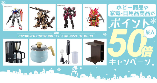 【対象商品】:ホビー:約750商品、家電・日用品:約700商品