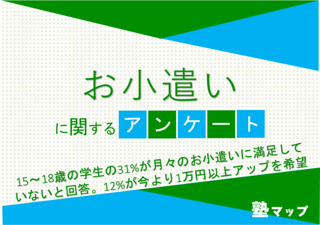 15~18歳の学生の31%が月々のお小遣いに満足していないと回答。12%が今より1万円以上アップを希望【お小遣いに関するアンケート】